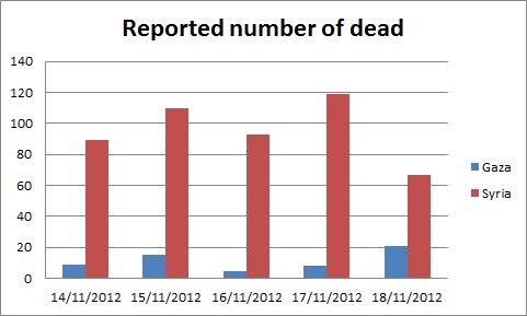 El periodista Antonio José Chinchetru publicaba en su muro de Facebook esta gráfica donde se muestran las cifras de muertos en Gaza y Siria en los primeros días de la operación Pilar de Defensa.